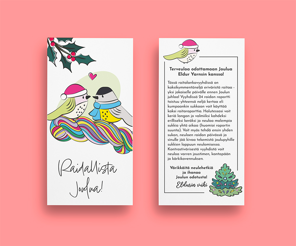 Logon ja graafisen ohjeiston luominen käsityöläisyritykselle. Yritykselle toteutettiin myös erilaisia digitaalisia kuvituksia ja markkinointimateriaaleja, kuten lankatuotteen vyöte ja tilausten mukaan liitettäviä flyereita.